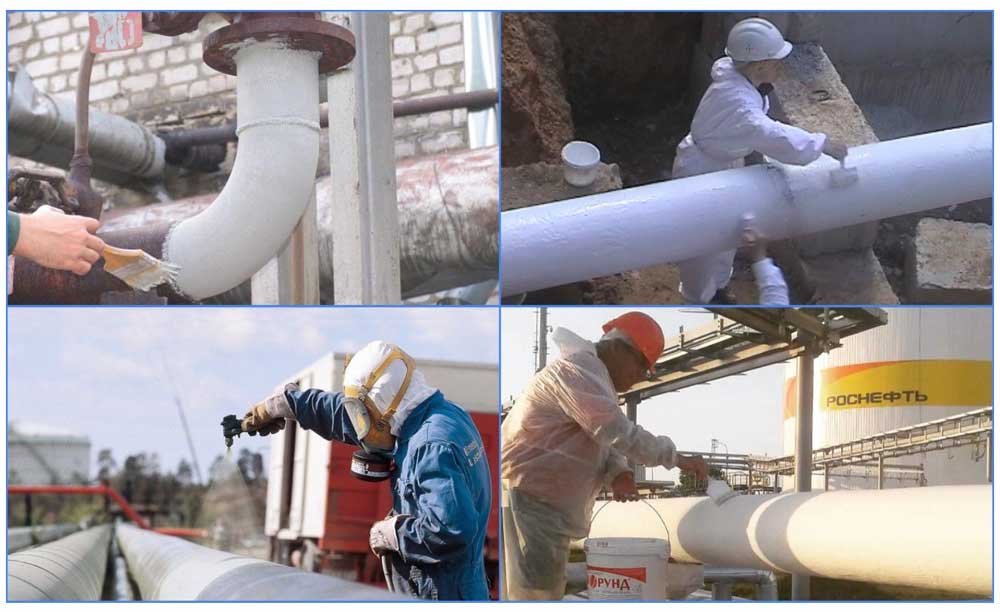 Этот инновационный материал представляет собой густой пастообразный состав, который наносят на поверхность трубопровода. Слой краски толщиной 4 мм по своим свойствам соответствует 8-ми миллиметровой минераловатной изоляции.