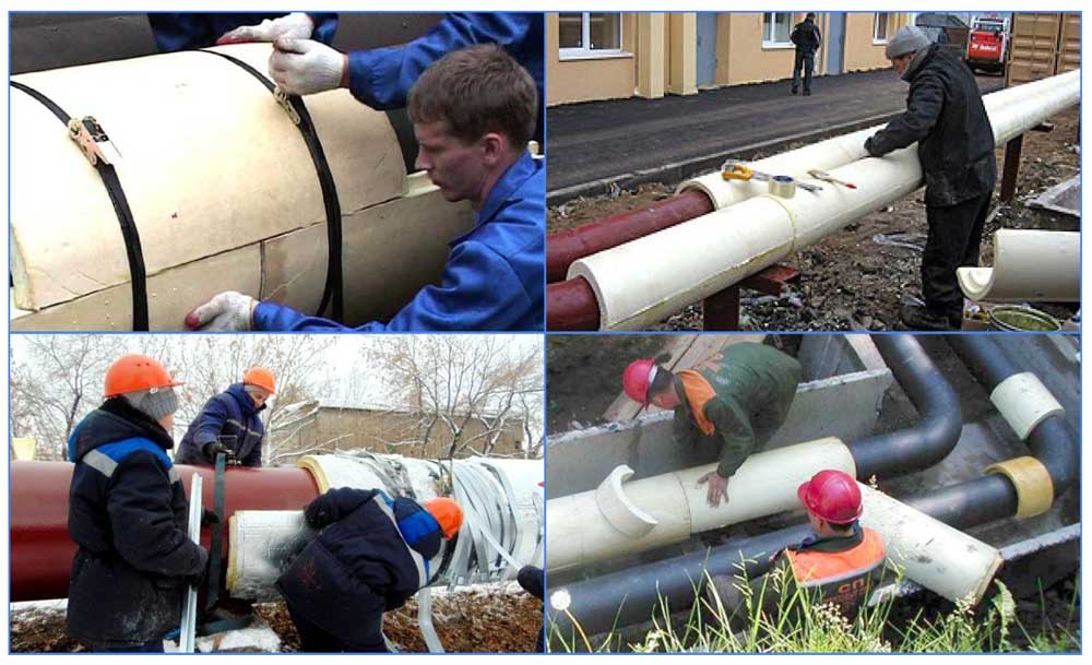 Однако малая механическая прочность данных материалов не позволяет использовать их при подземной прокладке. Вес и давление грунта приведут к уплотнению слоя и потере теплоизоляционных свойств. Поэтому использование допускается только при открытой прокладке труб.