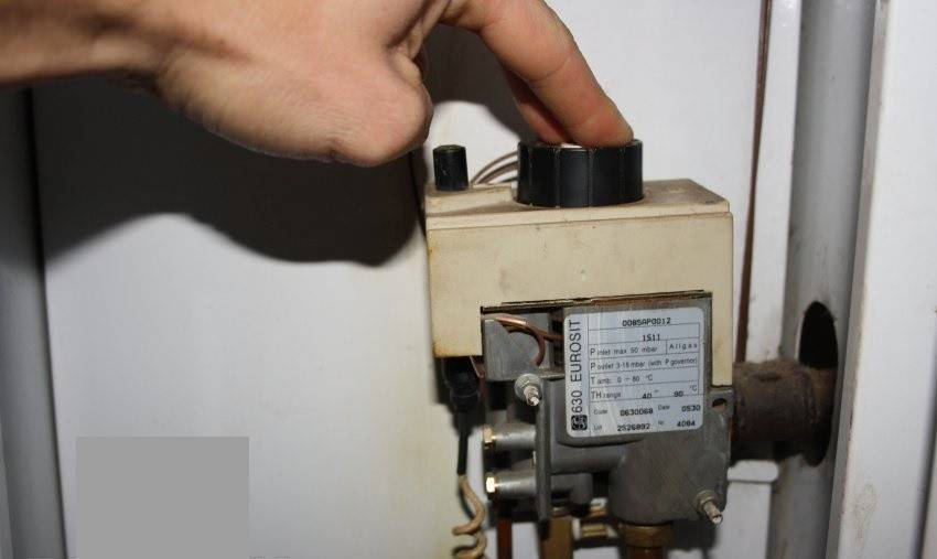 Если при включенном запальнике газ не подается при повороте ручки, есть риски неполадок электромагнитного клапана, термопары, термостата или клапана подачи. Эти поломки устраняет специалист.