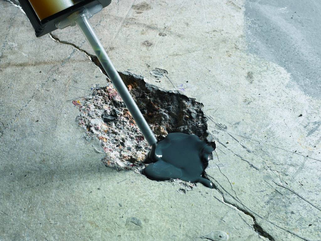 Устранить выбоины можно так же, как и трещины. Вам понадобится равномерно углубиться до основания изъяна, очистить его поверхность, прогрунтовать и залить цементным раствором. Если же выбоина не очень большая, ее залатать можно, даже не расширяя, а просто используя мастику с герметизирующим эффектом или эпоксидную смолу.