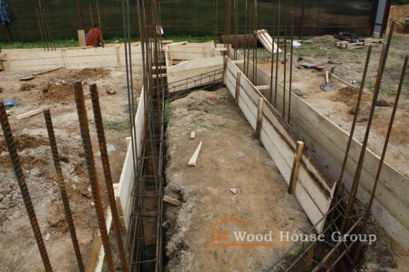 Формируется съемная опалубка под ростверк, ширина которого, как правило, равняется ширине несущих стен, а высота – в пределах 0,5 м.