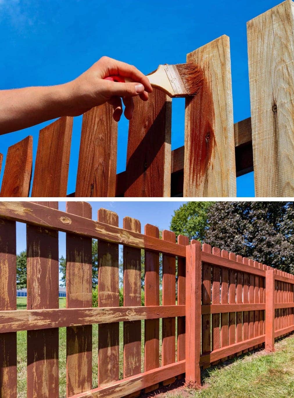 Окрашивание или тонировка забора – самый простой и бюджетный вариант. Сочетание определенных цветов и фактур поможет придать изделию практически любой стиль;
