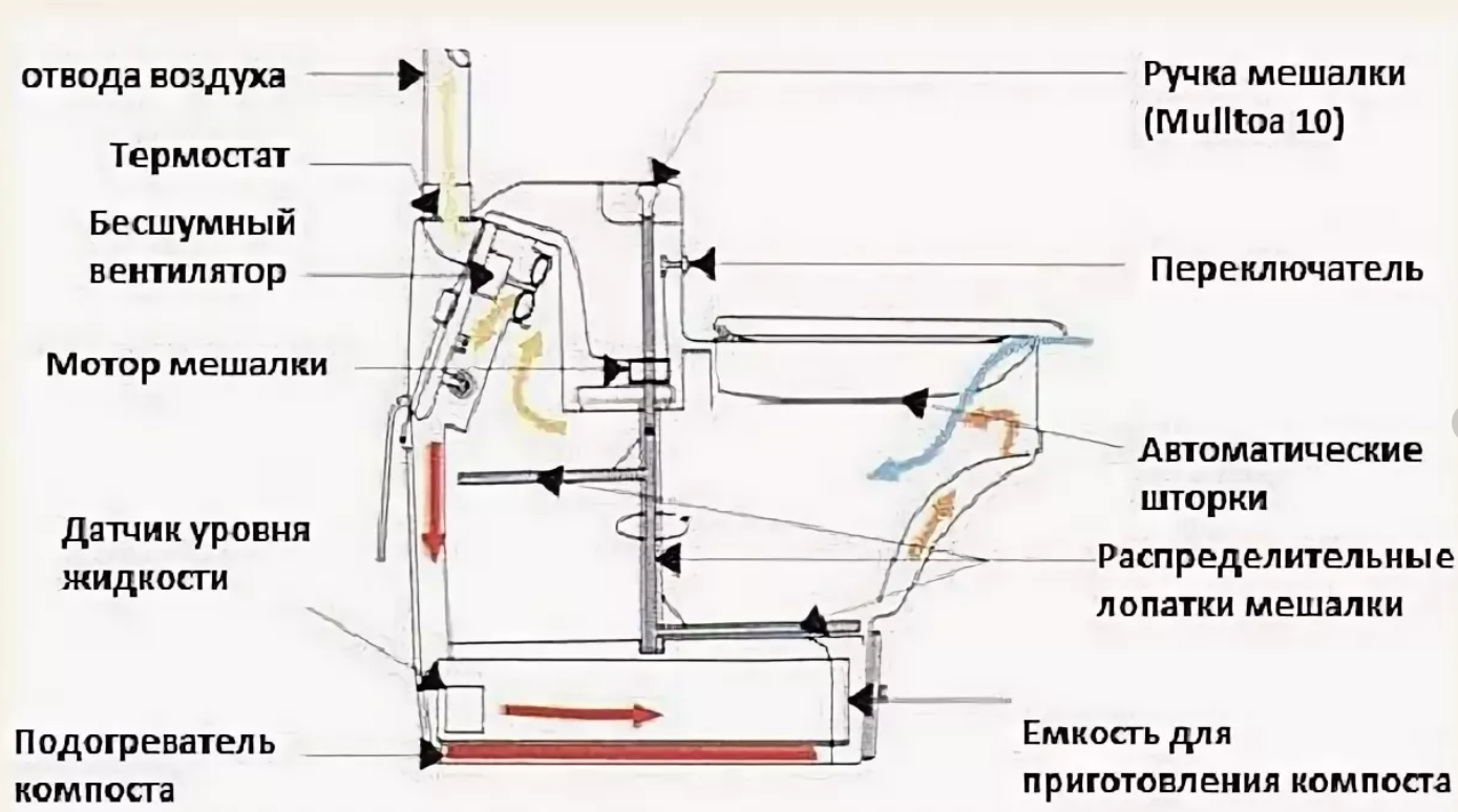При использовании таких устройств твердые фракции высушиваются и сжигаются, оставляя небольшое количество золы. Ее можно сбрасывать в компост. Проблема возникает со сливом жидкости. Для этого необходимо оборудовать фильтрующую дренажную систему.
