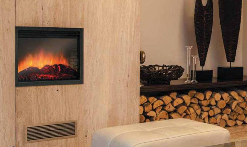 Электрический очаг встраиваемого типа может устанавливаться в порталы, ниши. Он становится удобным предметом, помогающим визуально разделить две функциональные зоны, например, кухонную и гостиную, встраиваясь в стеллаж или портал с живописной отделкой задней стенки. Установка такого камина очень простая, достаточно подготовить нужное по габаритам место, поставить прибор и подключить к простой розетке с нормативным сетевым напряжением 220 В.