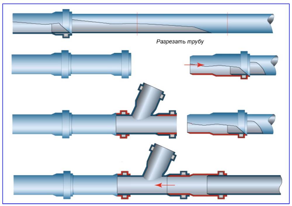 Рис. 7 Принцип монтажа ревизии в уже рабочий трубопровод
