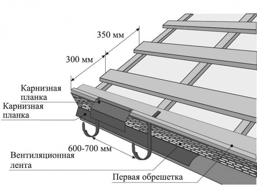 Крепить направляющую металлическую планку необходимо к стропильной доске под воздушно-вентилируемой частью.