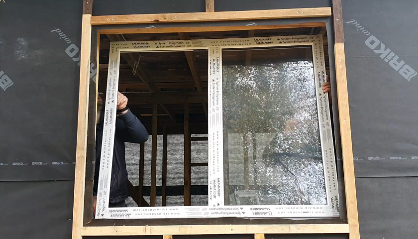 В готовые стены вставляются оконные блоки, навешивается наружная дверь.