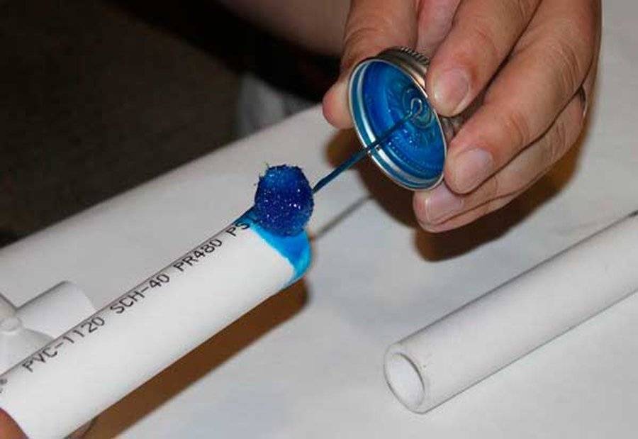 По завершении подготовки, можно начинать клеить трубы ПВХ (видео с инструкцией прилагается). Для склеивания ПВХ изделий понадобится, в первую очередь, клей, а также кисть для его нанесения. Зачастую кисточка продается вместе с клеем. Но, если производителем не предусмотрена такая комплектация, приобретите инструмент отдельно, учитывая, что он должен быть с натуральной щетиной. Если Вы решили практиковать склеивание горячим способом, подготовьте также специальный паяльник («утюг») для труб из пластика, но может использоваться и сварочный аппарат.