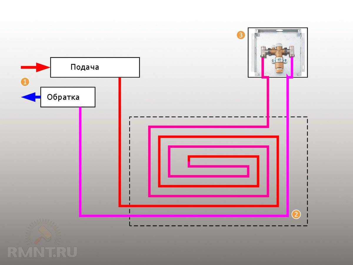 Схема смесительной группы для теплого водяного пола на трехходовом клапане