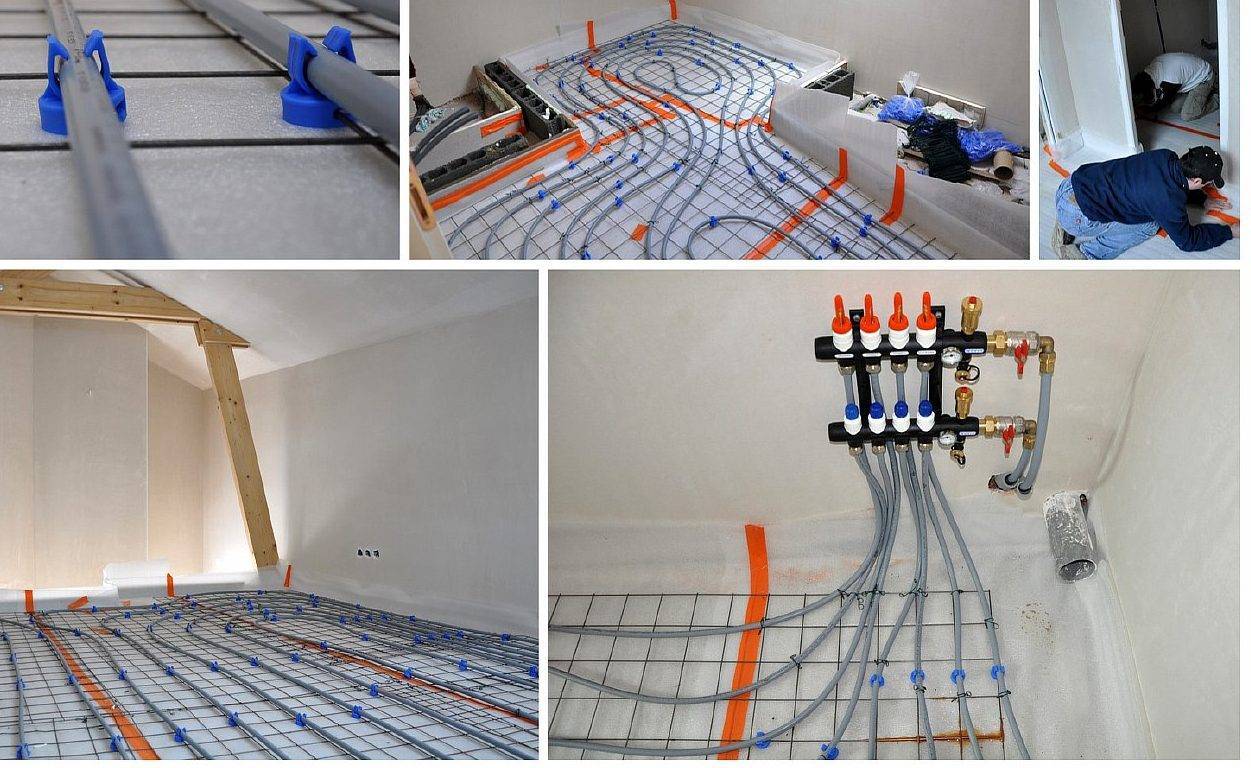 Это особенно важно в холодных регионах. Трубки фиксируют на армированной сетке или системе штроб. Затем кладут стяжку
