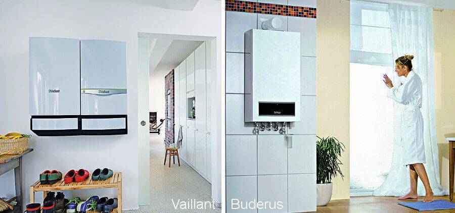 Настенный газовый котел ecoTEC exclusive (Vaillant, Германия. Фото слева). Газовый конденсационный котел Logamax plus GB 162 (Buderus, Германия. Фото справа).