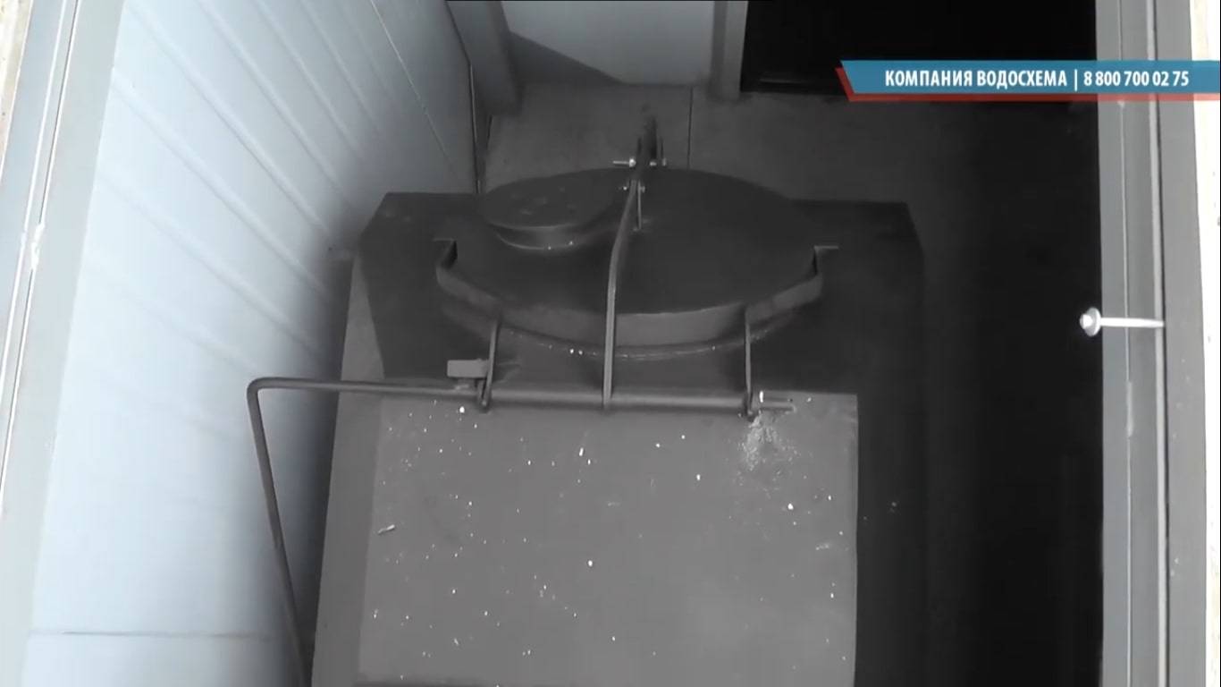 Крышка люка просто лежит сверху, без запирающих механизмов. Она тоже утеплена. И под ней внутри модуля находится загрузочный бункер и доступ к теплообменнику.