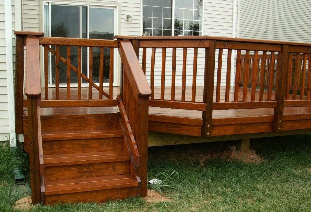 Наиболее часто натуральная древесина применяется в дачных домах – бревенчатых срубах либо сделанных из клееного бруса. Без специальной обработки, дерево служит недолго, потому пропитку составами против гнили, плесени, повреждения грибком рекомендуется проводить ежегодно. Также деревянные постройки покрывают лаками, реже – цветными красками. Горизонтальную поверхность покрывают половой либо террасной доской, перила выполняются из точеных балясин, козырек также делают резным. Наиболее часто для строительства применяется: сосна, кедр, лиственница, ель, осина, дуб, ясень, береза, ольха.