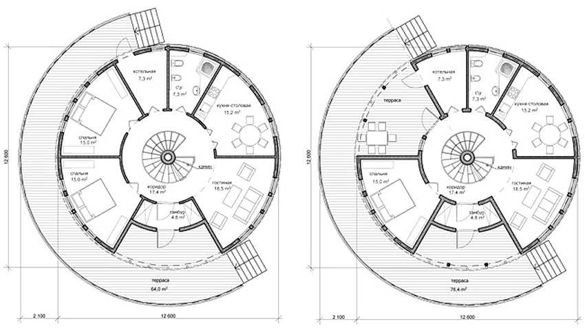 Универсальность сооружения позволяет вписать его в любой ландшафт и подобрать место на любом участке. Кроме того, к готовому дому несложно пристроить дополнительные комнаты такой же формы.