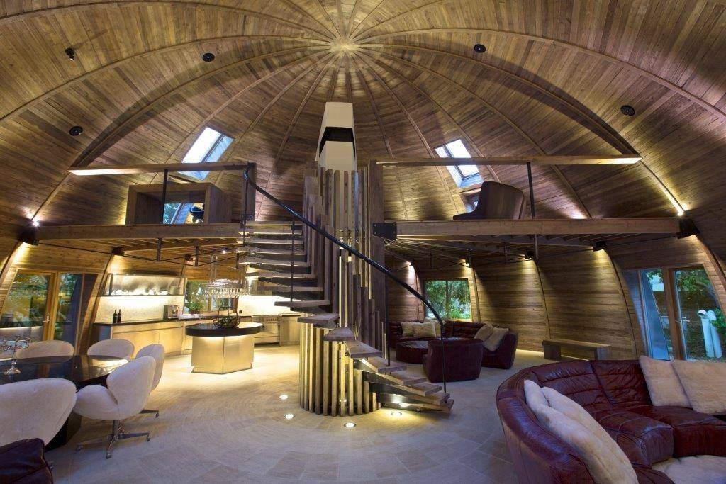 Сегодняшняя статья посвящена интерьерам купольных домов. Сферические, или купольные, дома – это относительно новая энергоэффективная технология, и одновременно вызывающая самое большое количество споров. Сторонники купольного строительства утверждают, что такие дома дешевы при возведении и экономичны при эксплуатации, противники – что технология сложна и нерациональна. Мы рассмотрим основные плюсы и минусы таких конструкций, а также их возможности с точки зрения использования внутреннего пространства и создания интерьера.