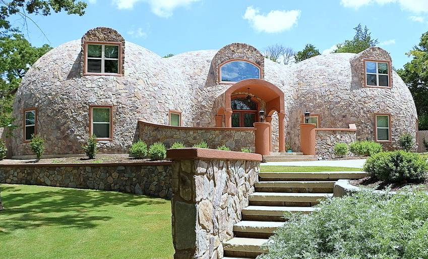Купольное строение представляет собой круглый дом. Фото проектов вы можете посмотреть ниже. Крыша имеет сферическую форму. Стены изготавливаются из камня, дерева и бетона.