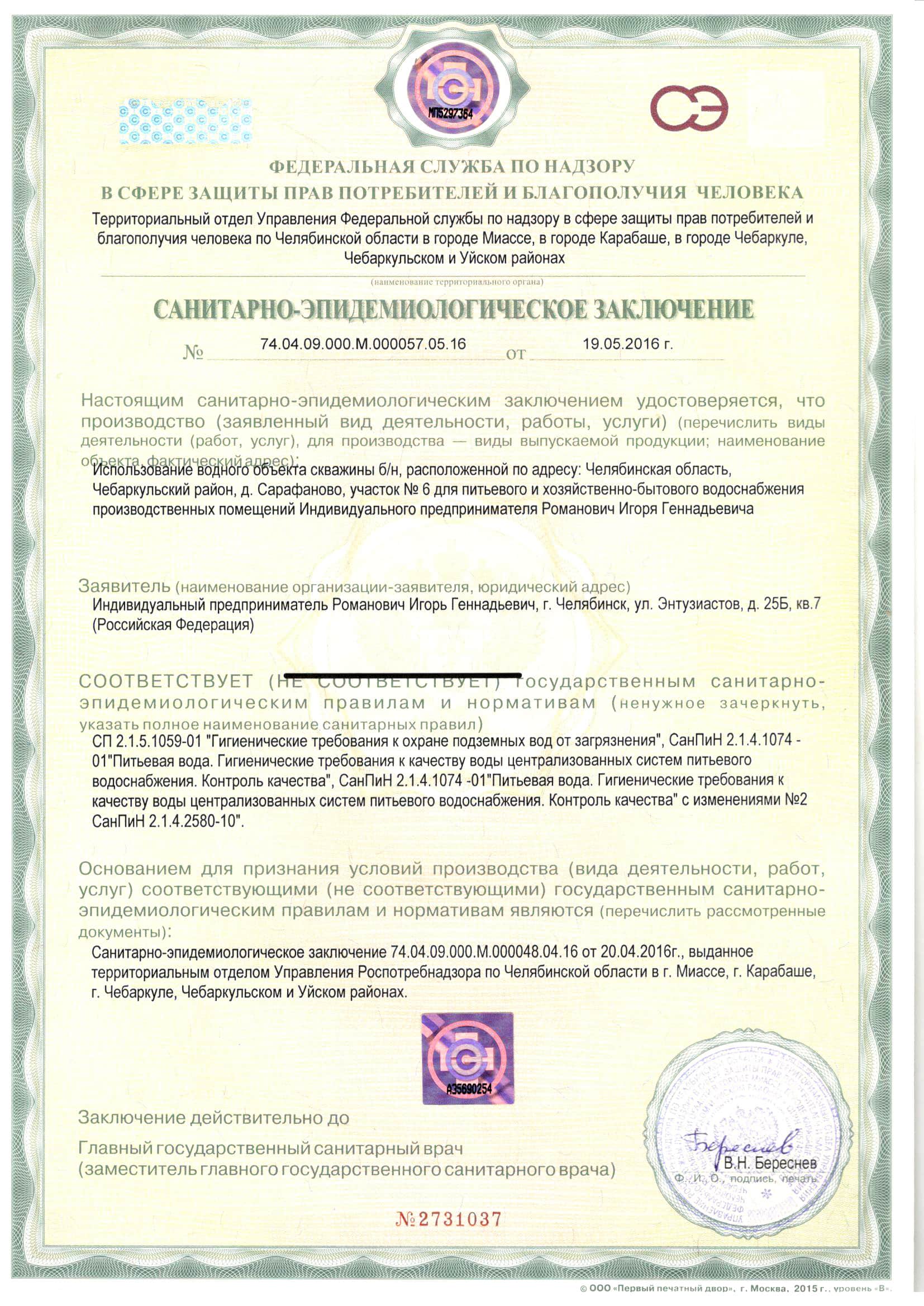 - Получение заключения Роспотребнадзора и проекта в территориальном Центре государственного мониторинга состояния недр.
