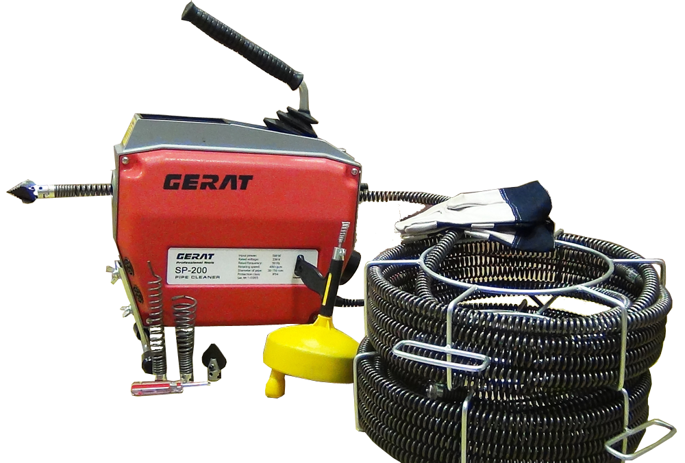 Машинка для прочистки канализационных труб с правильно подобранной насадкой, справится с засором любой сложности.
