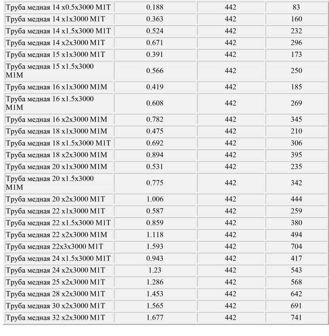 На сегодняшний день, можно выделить следующие диаметры медных труб, которые, так или иначе, фигурируют в таблицах: