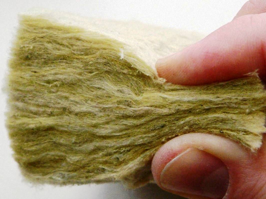 Исходником служит горная порода: диабаза, габбро. Волокна тонкие – 5–12 мкм, но длина их меньше, чему стекловаты – 1,5 см. Она слабо впитывает воду, применяется при обшивке влажных помещений.