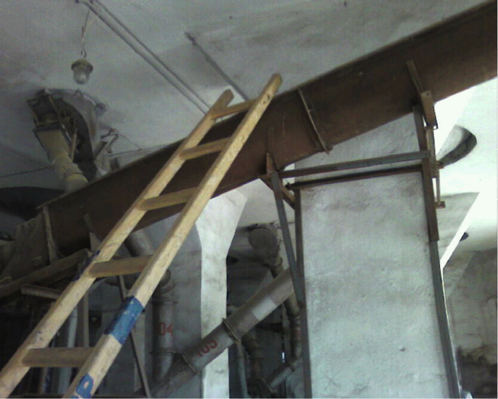 - Верхнюю часть лестницы крепят к месту, расположенному на 5-7 см ниже порога в частных домах. Метод крепления следующий: просверлить пару отверстий в стене и вделать в неё арматуру, на край которой необходимо приварить металлические пластины. Конец лестницы посредством сварного шва соединяется с данными пластинами. Арматуру в стене можно дополнительно укрепить с помощью раствора.