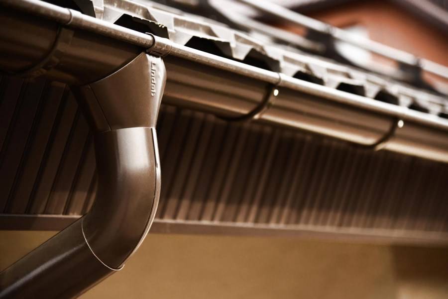 В ином случае водосток следует спрятать с тыльной стороны дома, что будет оптимальным решением при невозможности выбрать подходящий цвет. При использовании мягкой черепицы специалисты рекомендуют устанавливать пластиковую водосточную систему. Это обусловлено наличием у неё слоя минеральной крошки с абразивными свойствами. При больших потоках воды она смывается в водосток, царапая поверхность желоба, воронки и труб, а это соответственно может приводить к повреждению полимерного покрытия и развитию коррозии.
