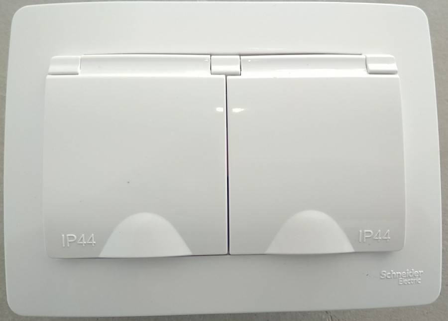 Для помещений с высоким уровнем влажности рекомендуется выбирать двойные розетки с классом защиты IP44, оснащенные крышкой.