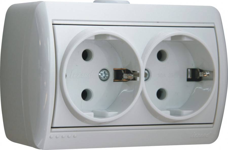 Внутренняя двойная розетка монтируется практически вровень со стеной. При этом сама конструкция и контакты розетки находятся в стене. Накладная розетка выступает над стеной и монтируется непосредственно на нее.
