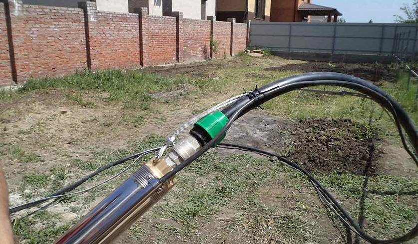 В зависимости от изготовителя и модели длины электрического кабеля может быть недостаточно для установки в скважину, тогда необходимо устроить герметическую кабельную муфту. Другим концом трос крепится к рым-болту оголовка, надежно фиксируя насос в скважине.