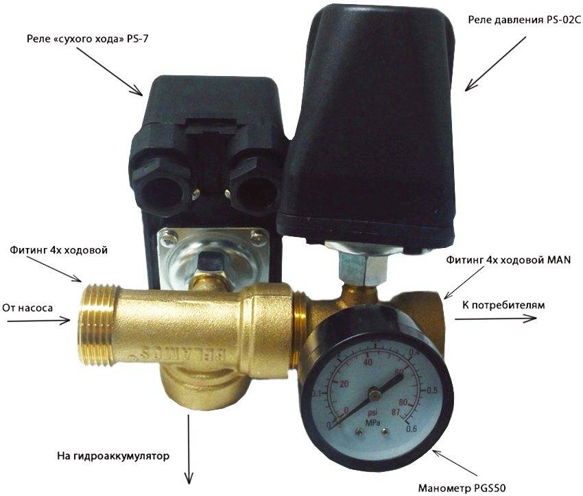 - Давление, при котором насос включается и отключается, устанавливается своими руками на специальном реле;