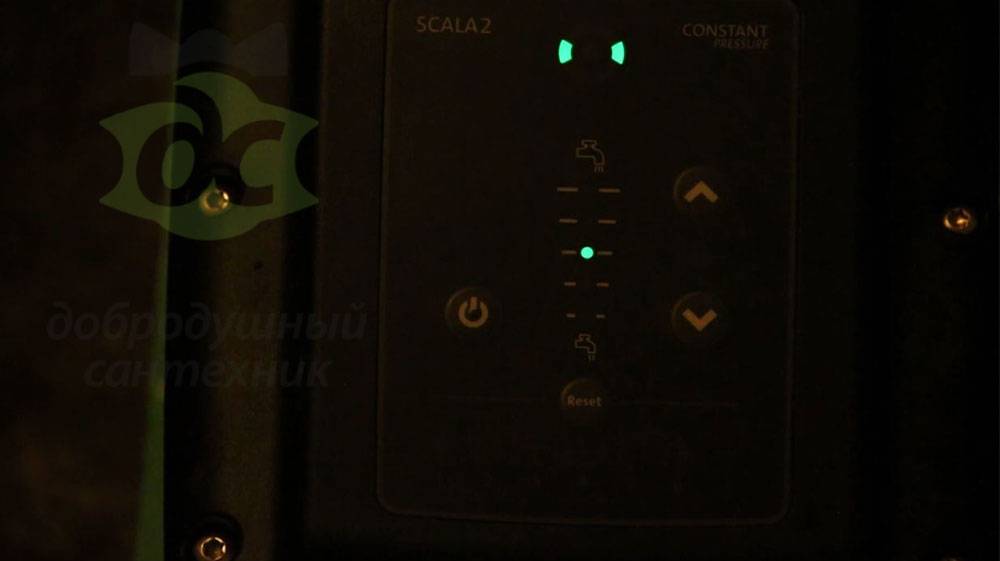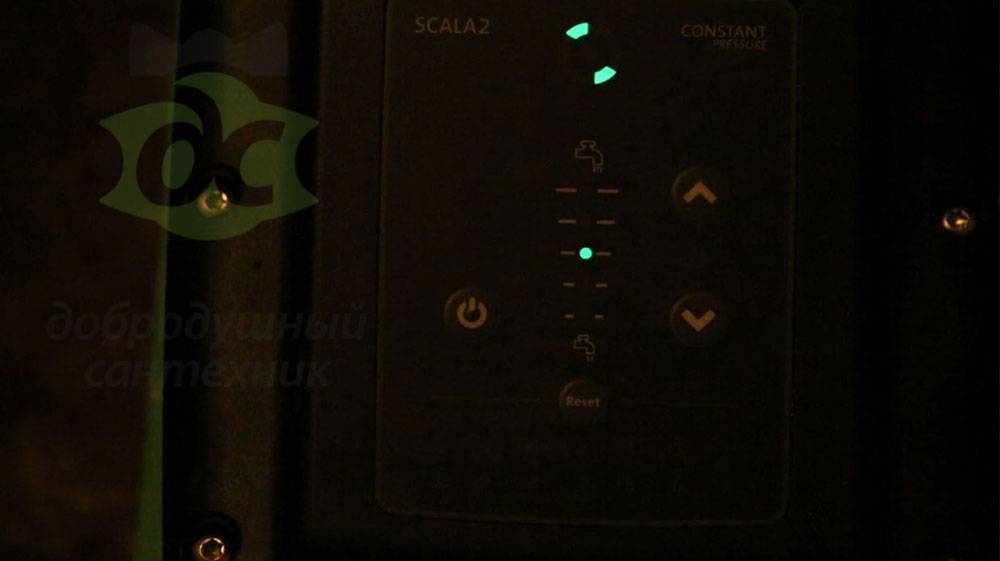 На панели сверху, самый главный индикатор, это индикатор работы или состояния станции. Если он не светится — станция отключена.Два индикатора горизонтально светятся — насос включён но не работает.