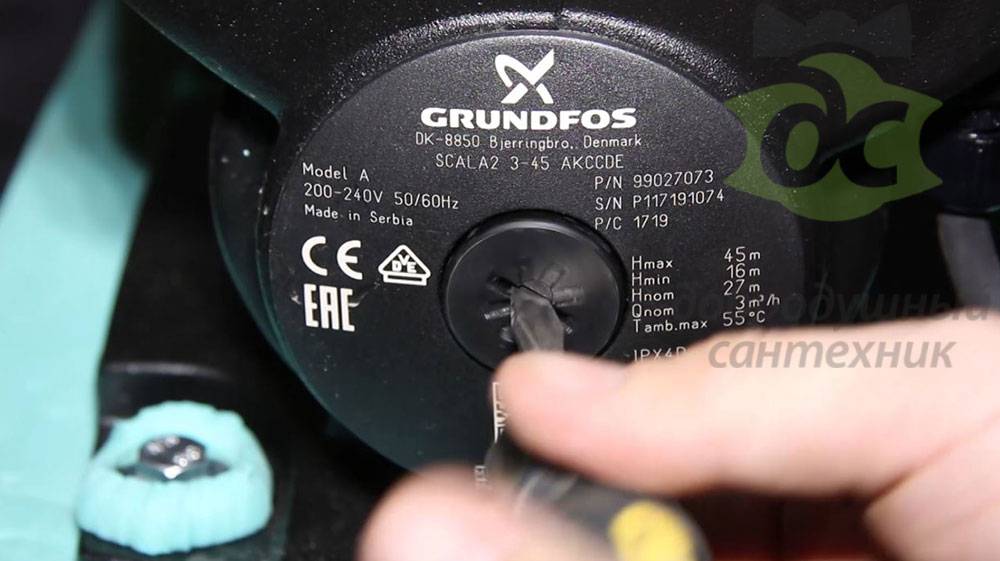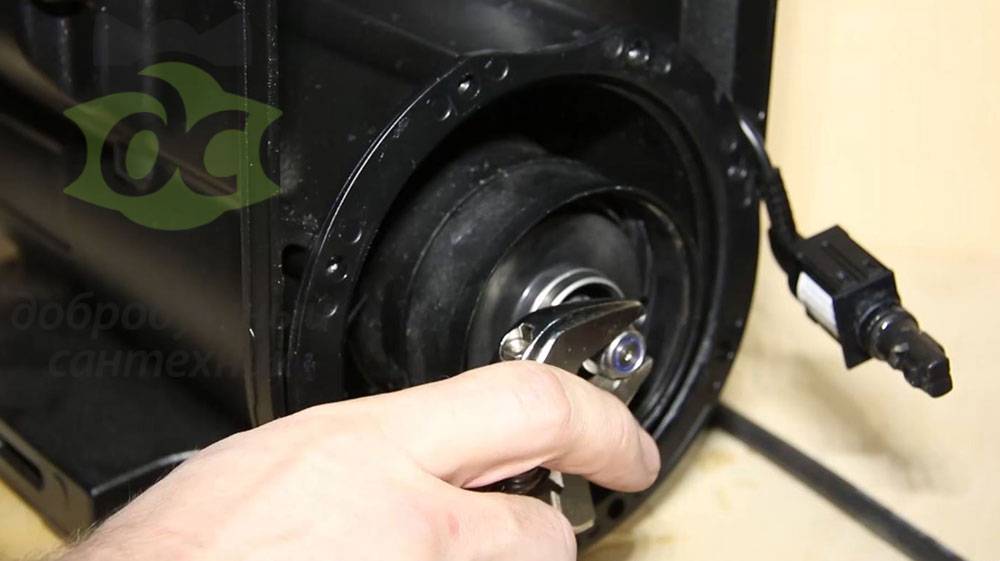 Если туда попала грязь, то это сразу будет видно. Для очистки придётся снять группу рабочих колёс. Для этого, со стороны шильдика насоса, надо удерживать вал толстой шлицевой отвёрткой и открутить гайку со стороны рабочих колёс.