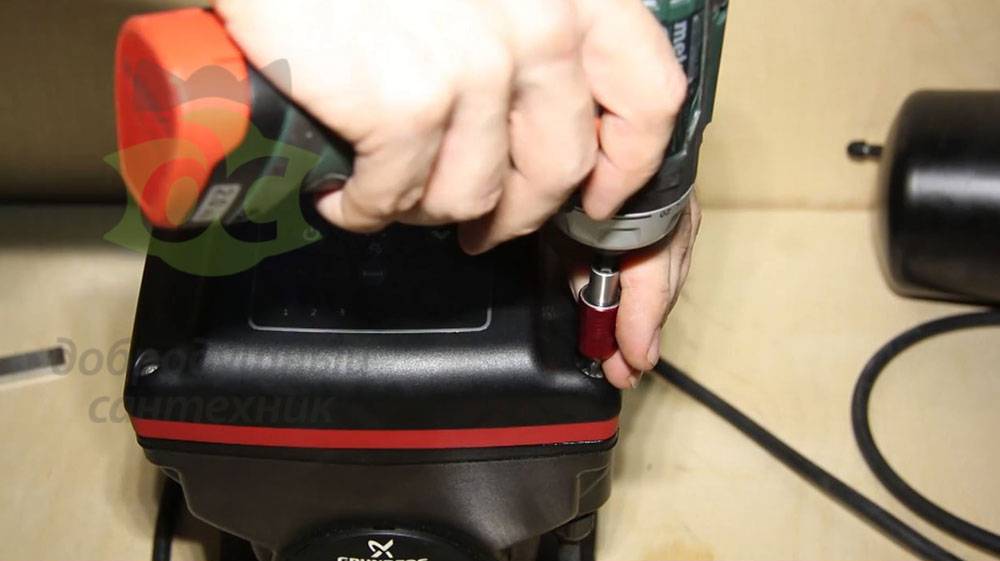 При первом подключении оборудования необходимо залить в него воду. Запрещено запускать станцию насухую. Вода заливается через специальное отверстие. Пуск производится с помощью одной кнопки на панели управления.