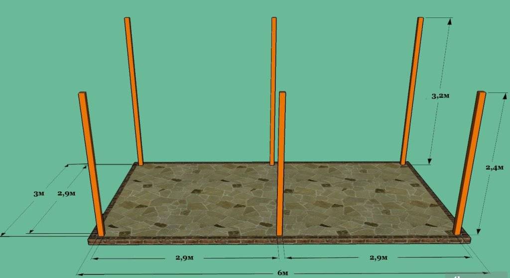 Прежде чем приступить непосредственно к сооружению конструкции, нужно найти чертеж, соответствующий вашему виду навеса, и произвести расчеты. Затем приготовить инструменты и материалы и переходить к установке. Несмотря на все преимущества металлических каркасов, наиболее распространены варианты деревянных конструкций. Поэтому мы рассмотрим вариант установки такого вида навеса.