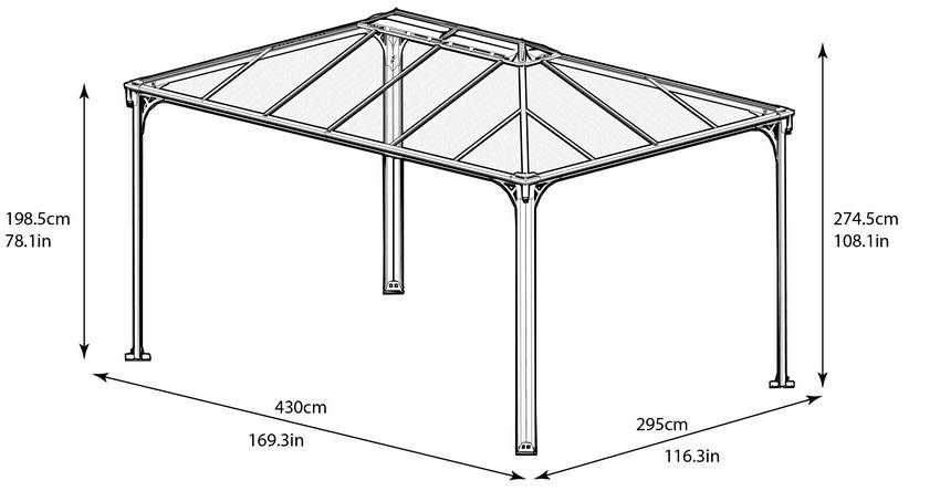 Важно составить проект навеса. Для этого необходимо предварительно замерить периметр участка, рассчитать каркас с учетом вертикального и горизонтального шагов. Для монтажа покрытия навеса из панелей поликарбоната толщиной менее 8 мм применяют шаг 600-700 мм