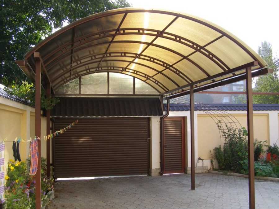 Дешевой и практичной заменой гаражу будет возведение навеса из поликарбоната.