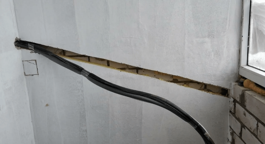 - После создания штроб переходят к подготовке трассы. Трубная бухта разматывается до определенной длины. На трубки надевается утеплитель. Его нужно заранее приобрести в необходимом объеме. Для более эффективного решения задачи нужно обмотать трассу кондиционера специальной обмоточной лентой из тефлона.