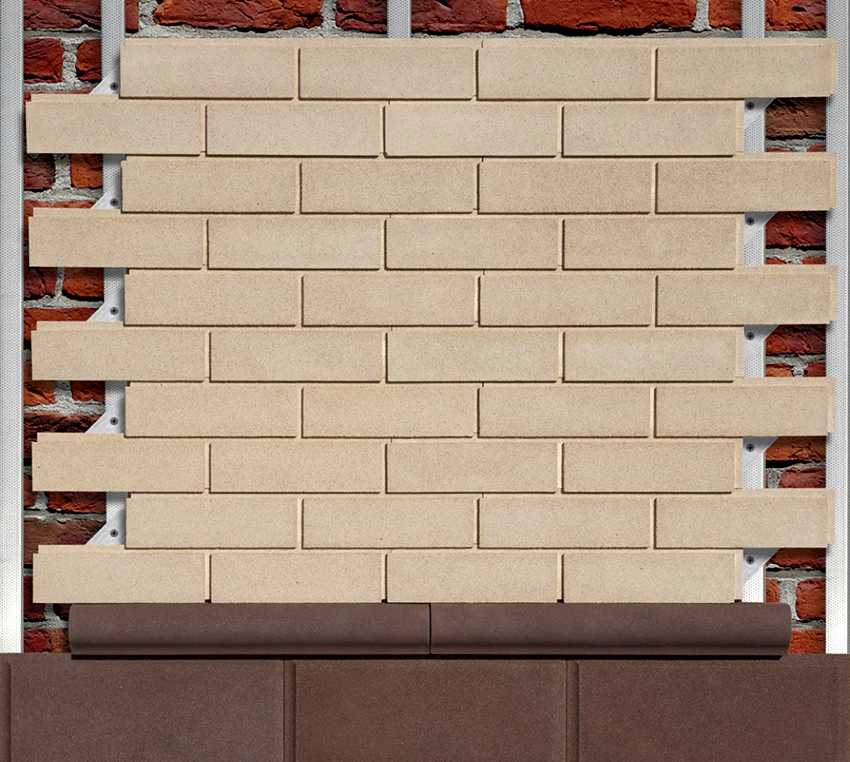Фасадные панели под кирпич имитируют различные виды кирпичной кладки — от старого рыхлого до облицовочного кирпича с гладкой поверхностью. В собранном виде поверхность сложно отличить от натуральной кладки, но стоимость панелей значительно ниже, чем у кирпича, а установка может быть произведена самостоятельно.
