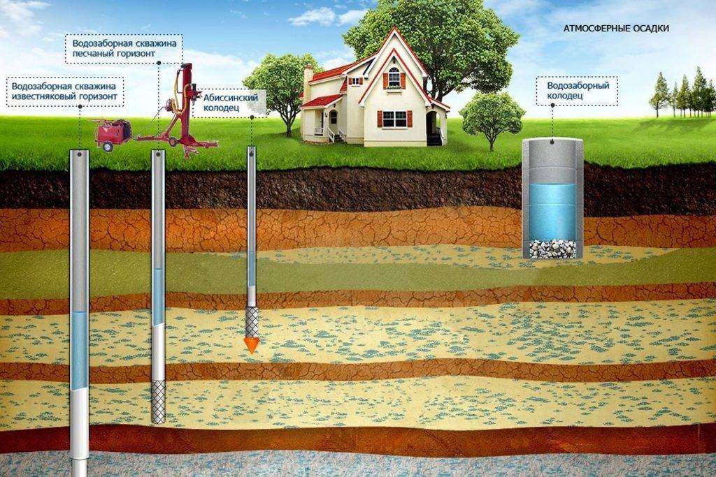 - Артезианский вариант (иначе называется «на известняк»). Рассчитан на слой залегания воды, находящийся, в основном, на глубине 80 и более метров. Это уже 3-ий и более водоносный горизонт. По типу насоса будет подбираться и труба, имеющая сечение от 120 мм и более.