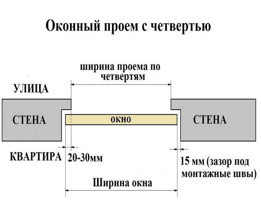 - Четвертной – внутренняя часть окна шире, чем наружная.