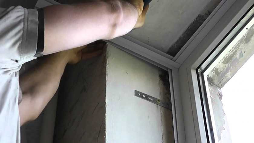 - Закрепить на раме монтажный профиль, а на оконном проеме – деревянные рейки.