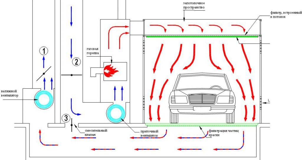 Приток свежей струи обеспечивается приточной вентиляцией. Если нужно, струя приточного воздуха может предварительно очищаться. Обратная вытяжная вентиляция производственных помещений предназначена для удаления отработанного воздуха. В комплекте вытяжки есть вытяжные вентиляторы и вентиляционные решетки, а также воздуховоды для обустройства вентиляционных каналов.