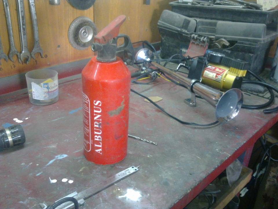- Крышка огнетушителя освобождается от ненужных деталей. Все отверстия в ней плотно заделываются.