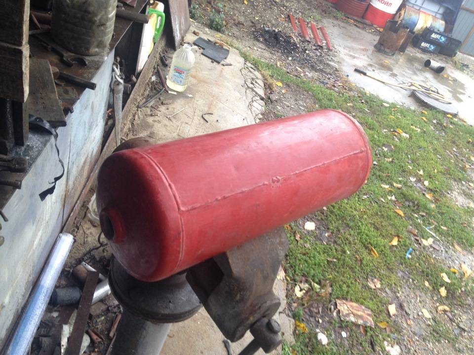 Делается второе отверстие, которое нужно обеспечить клапаном. Оно необходимо для сброса накопившейся влаги. Отверстие следует располагать внизу баллона. На этом этапе нужно произвести все расчёты, а также сделать наполнитель. Для заполнения ёмкости можно применять древесную стружку