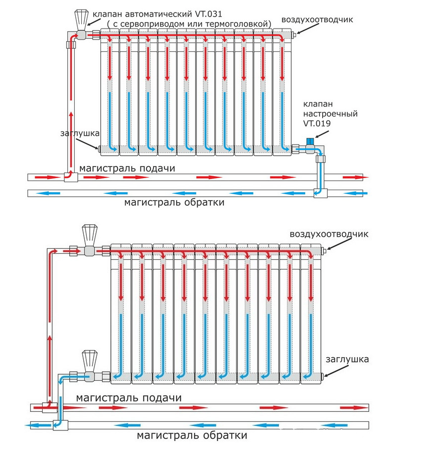 Схема подключения радиаторов к двухтрубной системе отопления