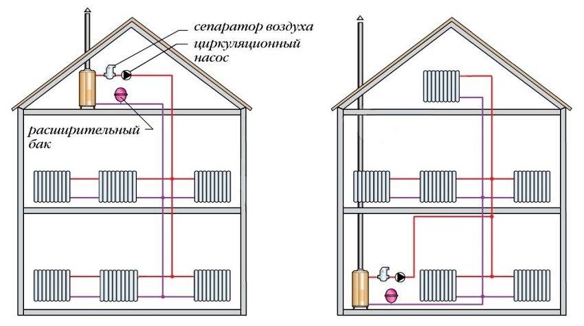 Схемы подключения двухтрубной системы отопления в двухэтажном коттедже