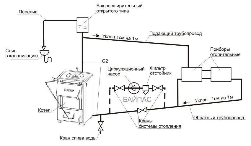 Схема открытой системы отопления с циркуляционным насосом