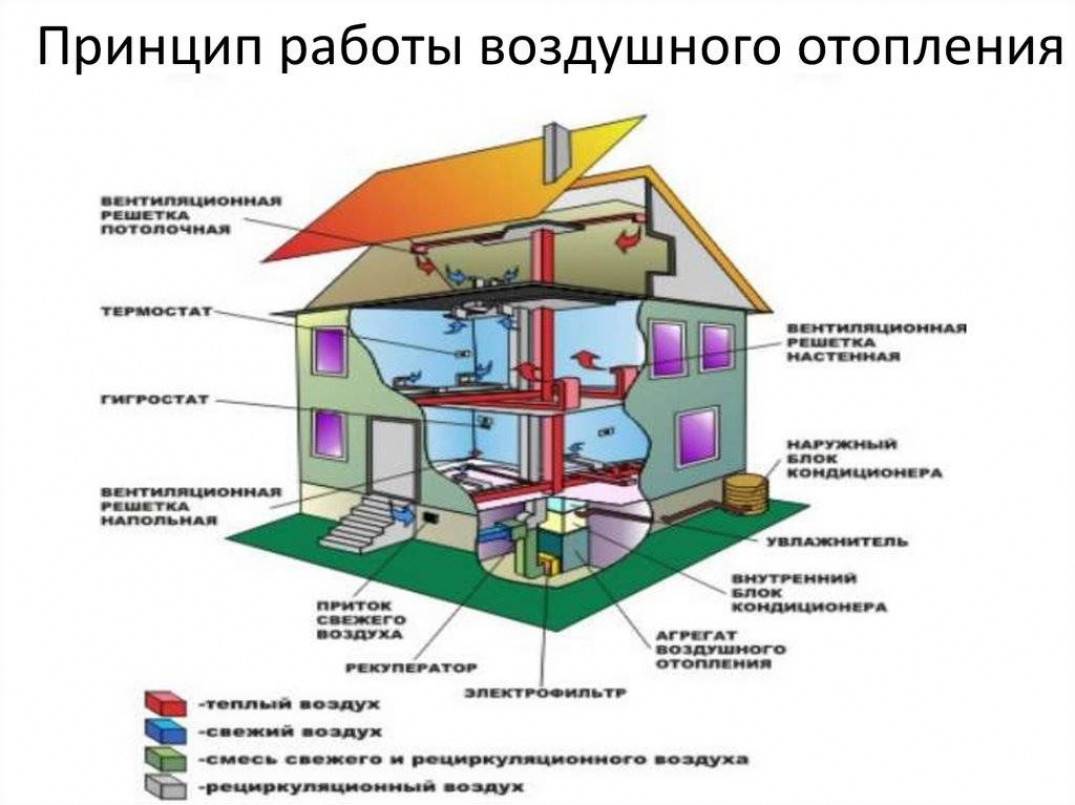 Конструкции воздушного отопления бывают нескольких видов в зависимости от их параметров.