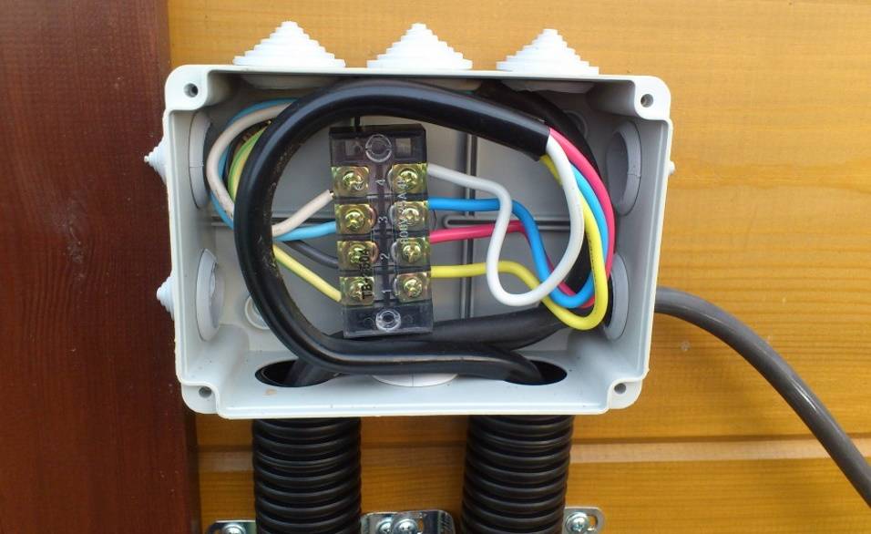Провода должны иметь цветовую маркировку: в однофазном исполнении ноль, фаза, и защитное заземление. Не помещает (особенно до соединения концов кабеля) повесить бирки с указанием назначения проводов. После окончательного монтажа достаточно зафиксировать назначение проводов на схеме. Можно наклеить краткие обозначения на внутреннюю сторону крышки, для удобства дальнейшего обслуживания.