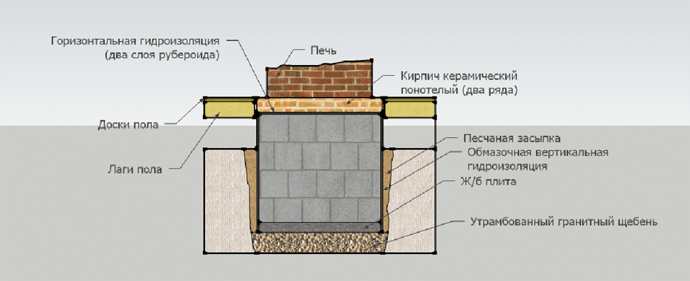Как и в любой другой конструкции, чтобы печь голландка круглая была устойчивой и могла правильно функционировать, для начала необходимо изготовить фундамент: